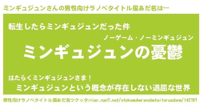 | ヒーロー風カッコイイあだ名 | 『スーパーミンギュジュン』 |
