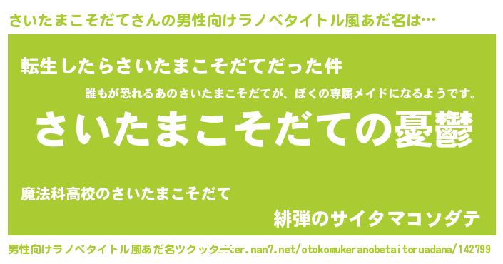 | 胡散臭い通販商品みたいなあだ名 | 『必ず成功する霊験あらたかなお札…その名も「さいたまこそだて」』 |