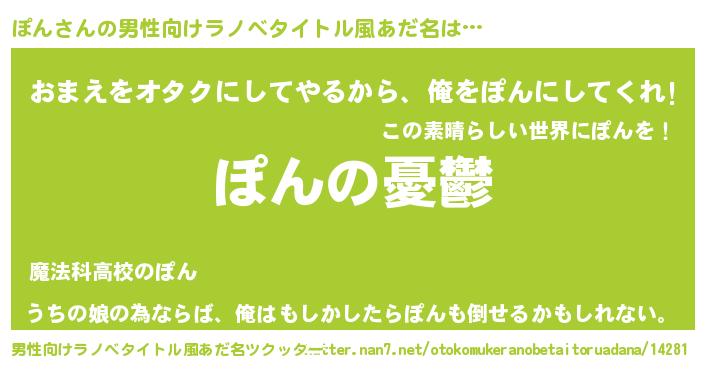 | 胡散臭い通販商品みたいなあだ名 | 『モテモテ間違いなしブレスレット…その名も「ぽん」』 |