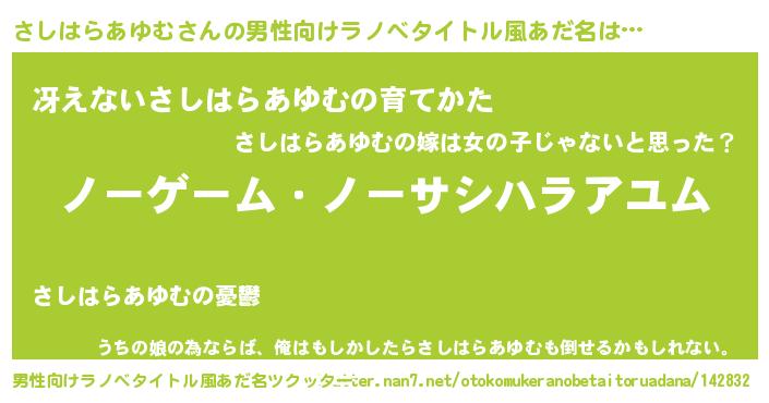 | 女子向けラノベタイトル風あだ名 | 『さしはらあゆむ恋絵巻』 |