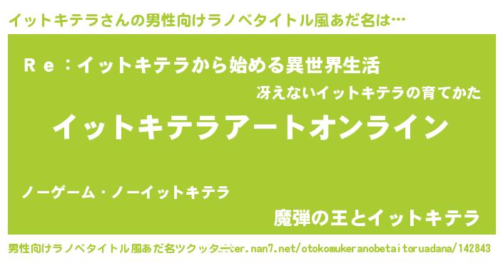 | 女子向けラノベタイトル風あだ名 | 『イットキテラ姫と円卓の騎士』 |