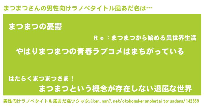 | ファンタジー風あだ名 | 『エターナルマツマツー』『マツフェル』 |