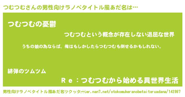 | ファンタジー風あだ名 | 『エターナルツムツムー』『ツムフェル』 |