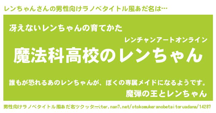 | ヘコむあだ名 | 『レンにゅー』『レンちゃん(苦笑)』 |