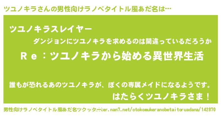 | ヒーロー風カッコイイあだ名 | 『最強戦士ツユノキラ』『黄金騎士ツユ』 |