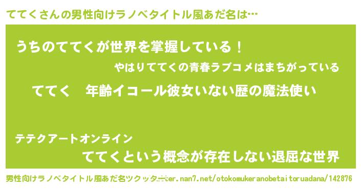 | 意味不明あだ名 | 『ニラ科ててく属』『永久保存ててく』 |