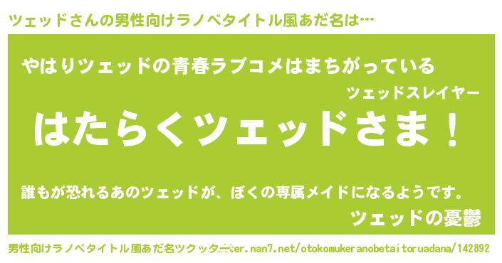 | 胡散臭い通販商品みたいなあだ名 | 『幸せが訪れる高級そうな絵画…その名も「ツェッド」』 |