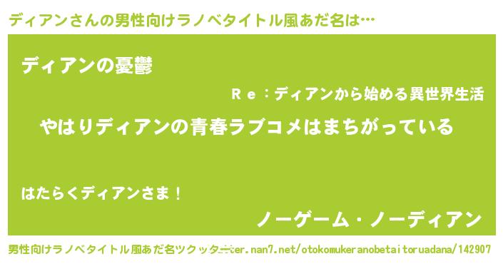 | 意味不明あだ名 | 『ディアンフォーエバー』『自称ディアン』 |