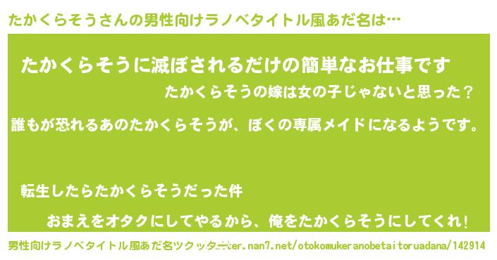 | 意味不明あだ名 | 『永久保存たかくらそう』 |