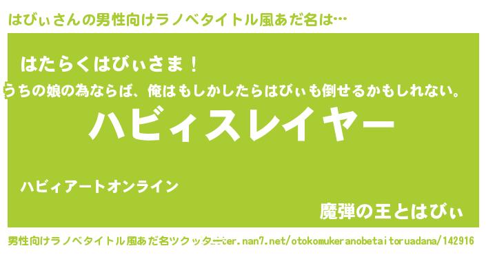 | ヒーロー風カッコイイあだ名 | 『仮面ハビダー』『ウルトラはびぃマン』 |
