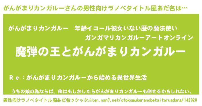 | 意味不明あだ名 | 『住所不定無職がんがまりカンガルー(59歳)』 |