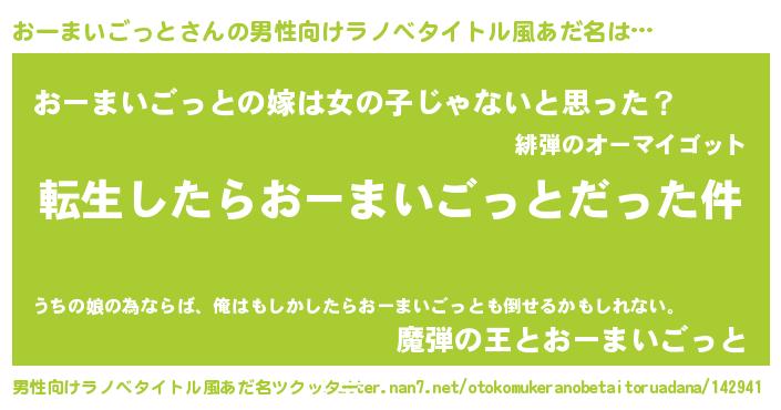 | 女子向けラノベタイトル風あだ名 | 『おーまいごっとの玉の輿計画!』 |