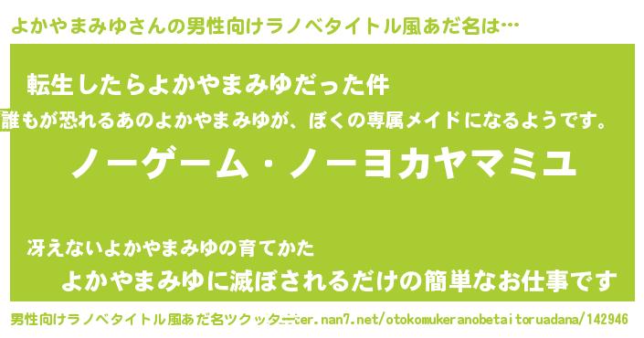 | 女子向けラノベタイトル風あだ名 | 『死神よかやまみゆの再婚』 |