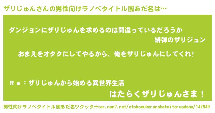| 女子向けラノベタイトル風あだ名 | 『ザリじゅん夫妻のなれそめ』 |