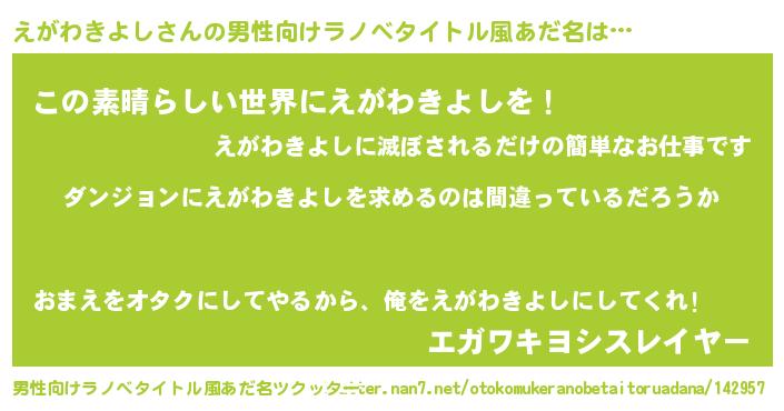 | 女子向けラノベタイトル風あだ名 | 『えがわきよしの卵を拾いまして』 |