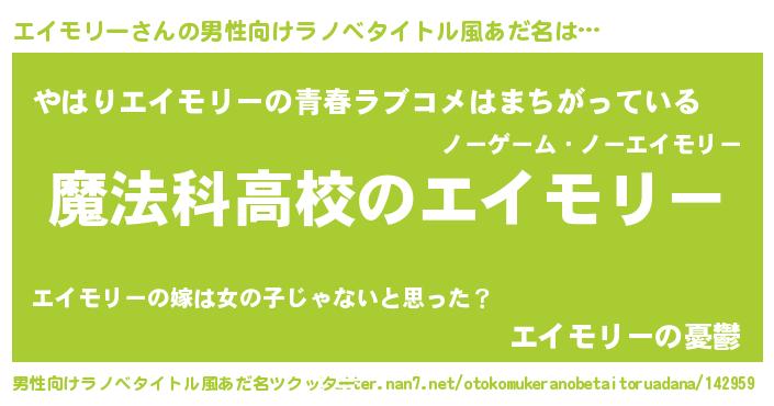 | ヒーロー風カッコイイあだ名 | 『超時空戦士エイモリー』『炎刃騎士エイ』 |