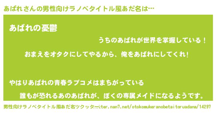 | ヘコむあだ名 | 『あばもー』『あばれ(爆)』 |