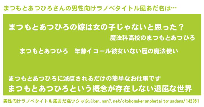 | 意味不明あだ名 | 『ヨモギ科まつもとあつひろ属』 |