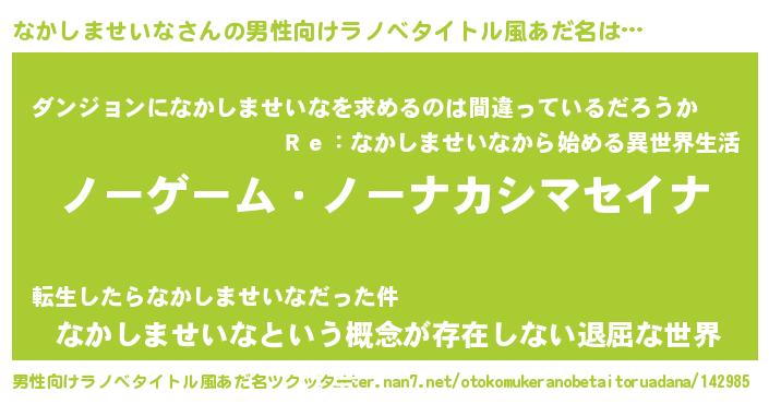 | ポケモン風あだ名 | 『ナックウザ』『ヒナカシマセイナ』 |