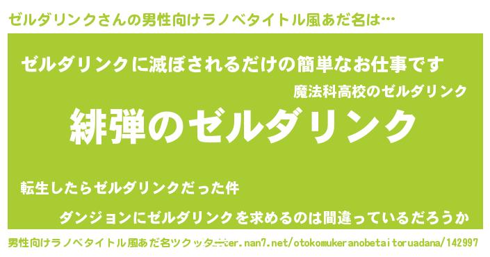 | 胡散臭い通販商品みたいなあだ名 | 『信頼と実績のネックレス…その名も「ゼルダリンク」』 |