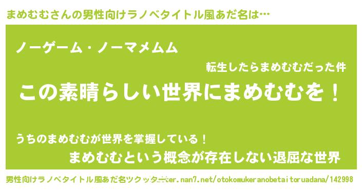 | 胡散臭い通販商品みたいなあだ名 | 『世界中を虜にした世界で10本だけ現存している希少なブランデー…その名も「まめむむ」』 |