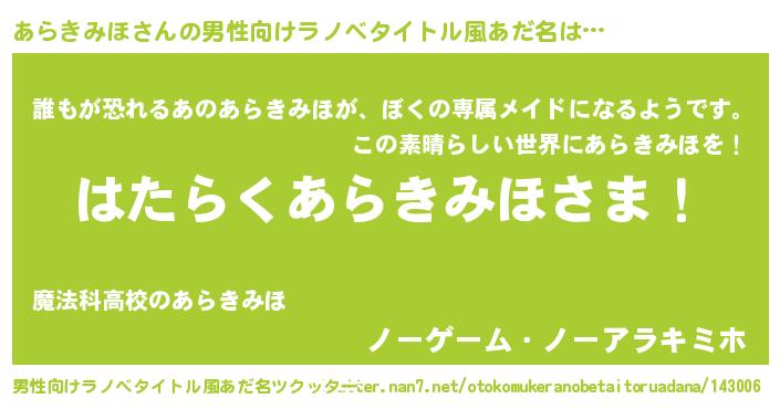 | ヘコむあだ名 | 『あらきみほ(笑)』『あらを』 |