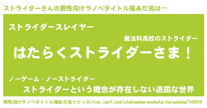 | 胡散臭い通販商品みたいなあだ名 | 『来世でも幸せになれる健康食品…その名も「ストライダー」』 |