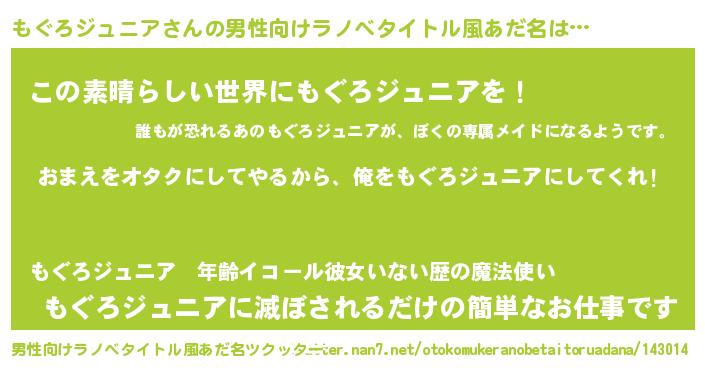 | 女子向けラノベタイトル風あだ名 | 『もぐろジュニア夫妻のなれそめ』 |