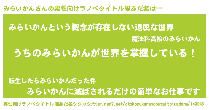 | 女子向けラノベタイトル風あだ名 | 『男装みらいかんの憂鬱な任務』 |