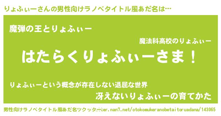 | 意味不明あだ名 | 『住所不定無職りょふぃー(68歳)』 |