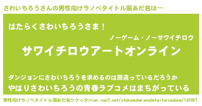 | 胡散臭い通販商品みたいなあだ名 | 『億万長者になれる水晶球…その名も「さわいちろう」』 |