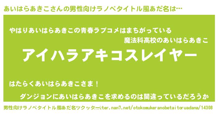 | 肩書あだ名 | 『あいはらあきこ大佐』 |