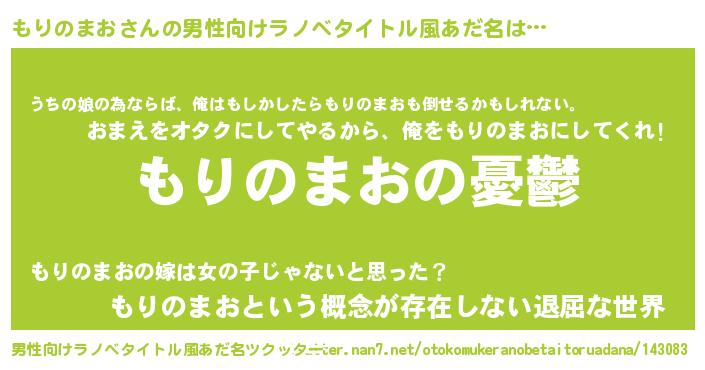 | 胡散臭い通販商品みたいなあだ名 | 『必ず成功するブレスレット…その名も「もりのまお」』 |