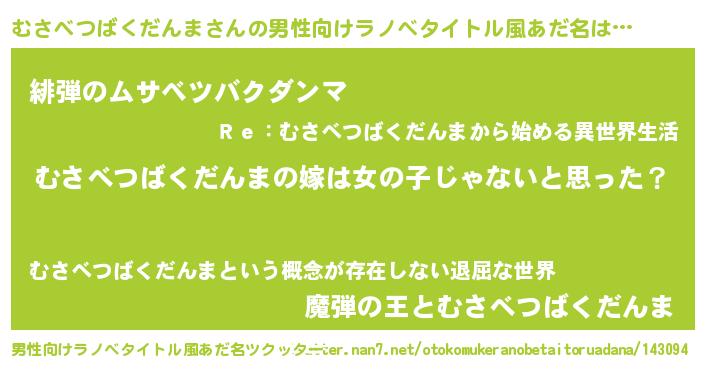 | 女子向けラノベタイトル風あだ名 | 『むさべつばくだんま様がみてる』 |