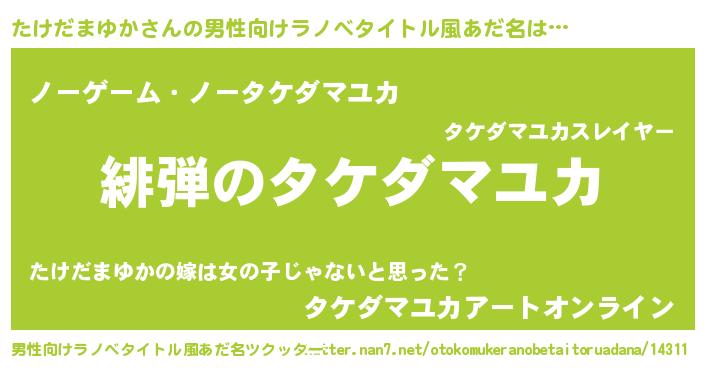 | 胡散臭い通販商品みたいなあだ名 | 『100人中100人が認めたイリジウム磁石…その名も「たけだまゆか」』 |