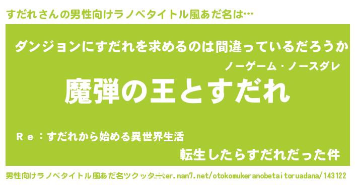 | 意味不明あだ名 | 『住所不定無職すだれ(74歳)』『自称すだれ』 |