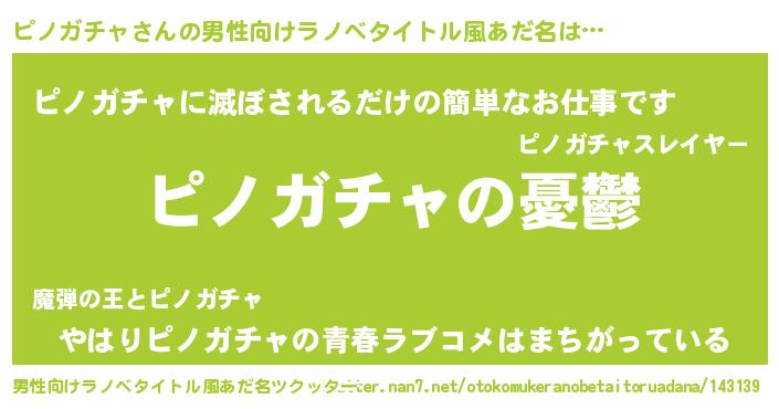 | 胡散臭い通販商品みたいなあだ名 | 『必ず成功するブレスレット…その名も「ピノガチャ」』 |