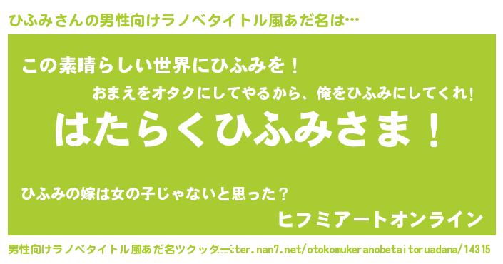 | 意味不明あだ名 | 『住所不定無職ひふみ(7歳)』 |