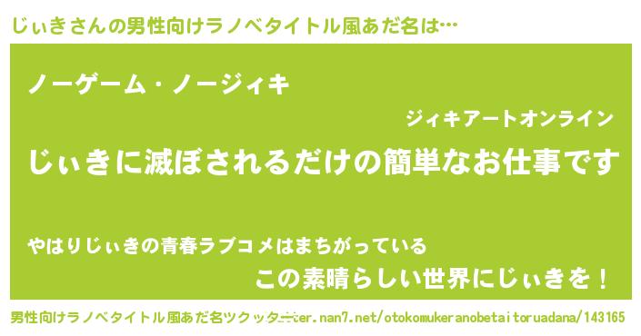| ヘコむあだ名 | 『じぃにゅー』『酢こんぶ』 |
