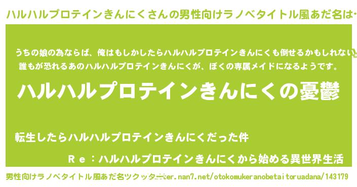 | ヒーロー風カッコイイあだ名 | 『スーパーハルハルプロテインキンニク』 |