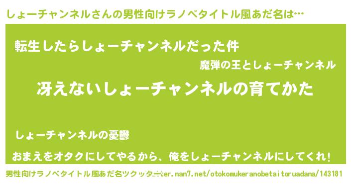 | 肩書あだ名 | 『しょーチャンネル艦長』 |