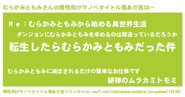 | 女子向けラノベタイトル風あだ名 | 『むらかみともみの玉の輿計画!』 |