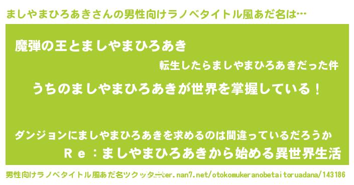 | ヘコむあだ名 | 『ましっぺ』『ましやまひろあき(笑)』 |