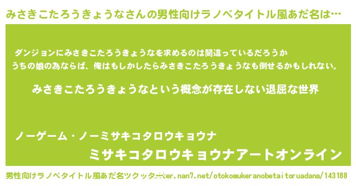 | ヘコむあだ名 | 『みさきこたろうきょうな(遠い目)』 |