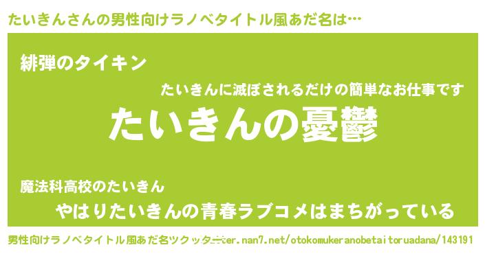 | 胡散臭い通販商品みたいなあだ名 | 『必ず成功する霊験あらたかなお札…その名も「たいきん」』 |