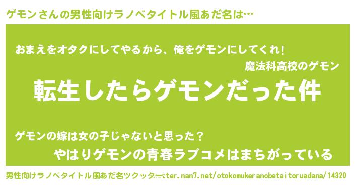 ゲモンさんの男性向けラノベタイトル風あだ名をツクッター!