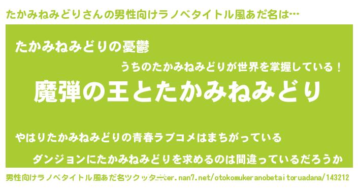 | 意味不明あだ名 | 『住所不定無職たかみねみどり(39歳)』 |