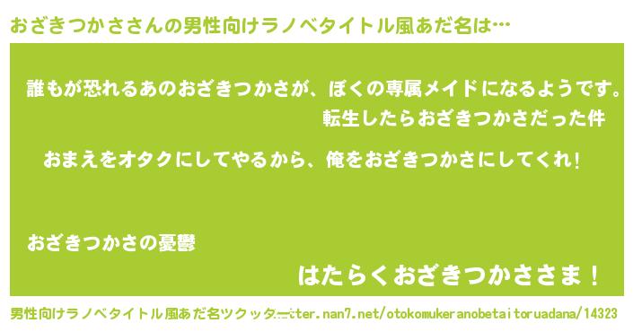 | ヘコむあだ名 | 『おざきつかさ(遠い目)』『おざにゅー』 |