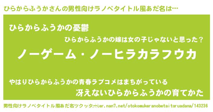 | 女子向けラノベタイトル風あだ名 | 『死神ひらからふうかの再婚』 |