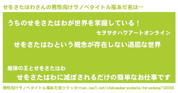 | ヘコむあだ名 | 『せをさたはわ(小並感)』『せをにゅー』 |